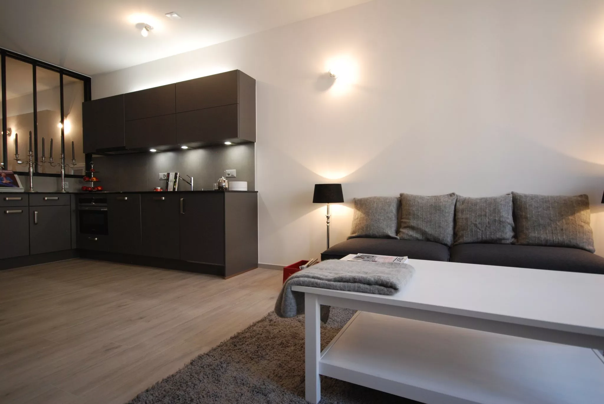 D'une surface d'env. 60m2, il dispose d'un séjour avec cuisine ouverte situé côté Grand-Rue et d'un coin bureau du côté Rue Traversière.