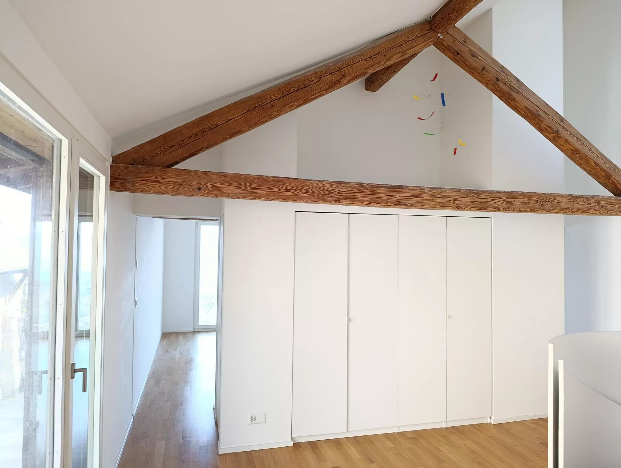 Ses belles poutres apparentes et ses volumes généreux offrent une atmosphère chaleureuse et accueillante avec une vue imprenable sur le lac Léman.